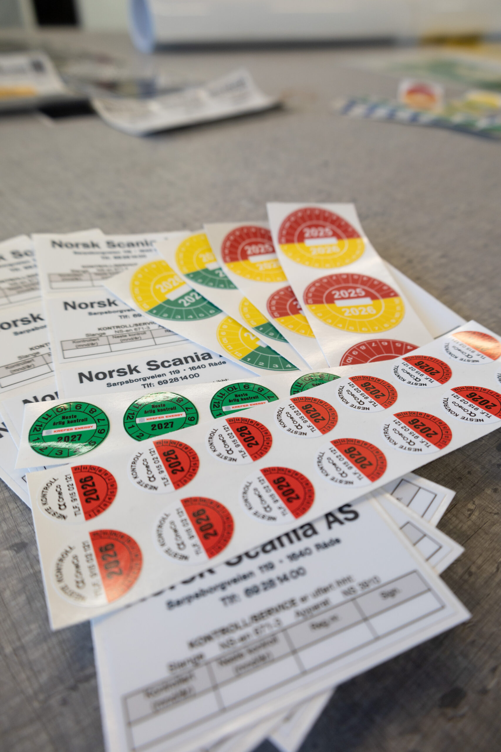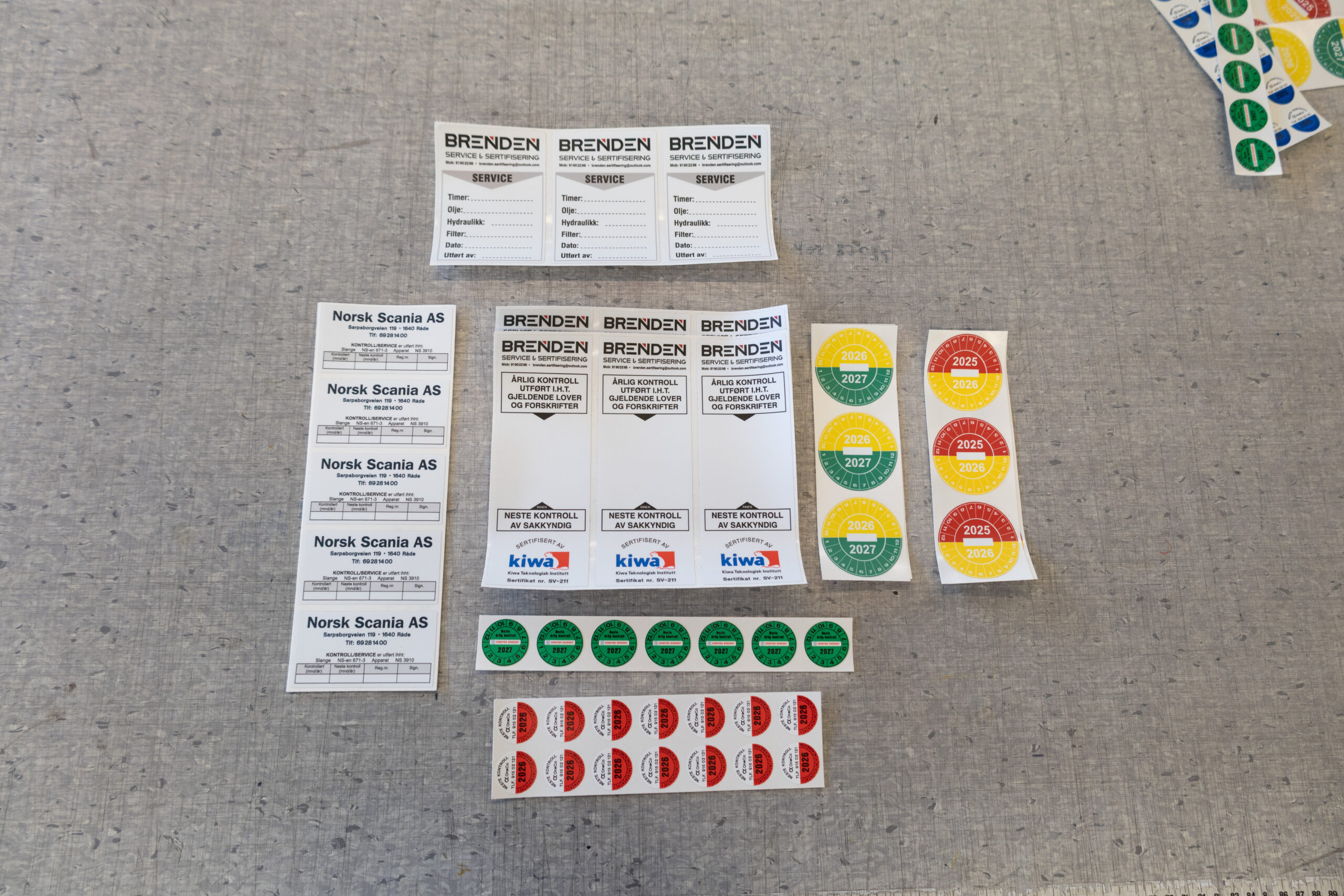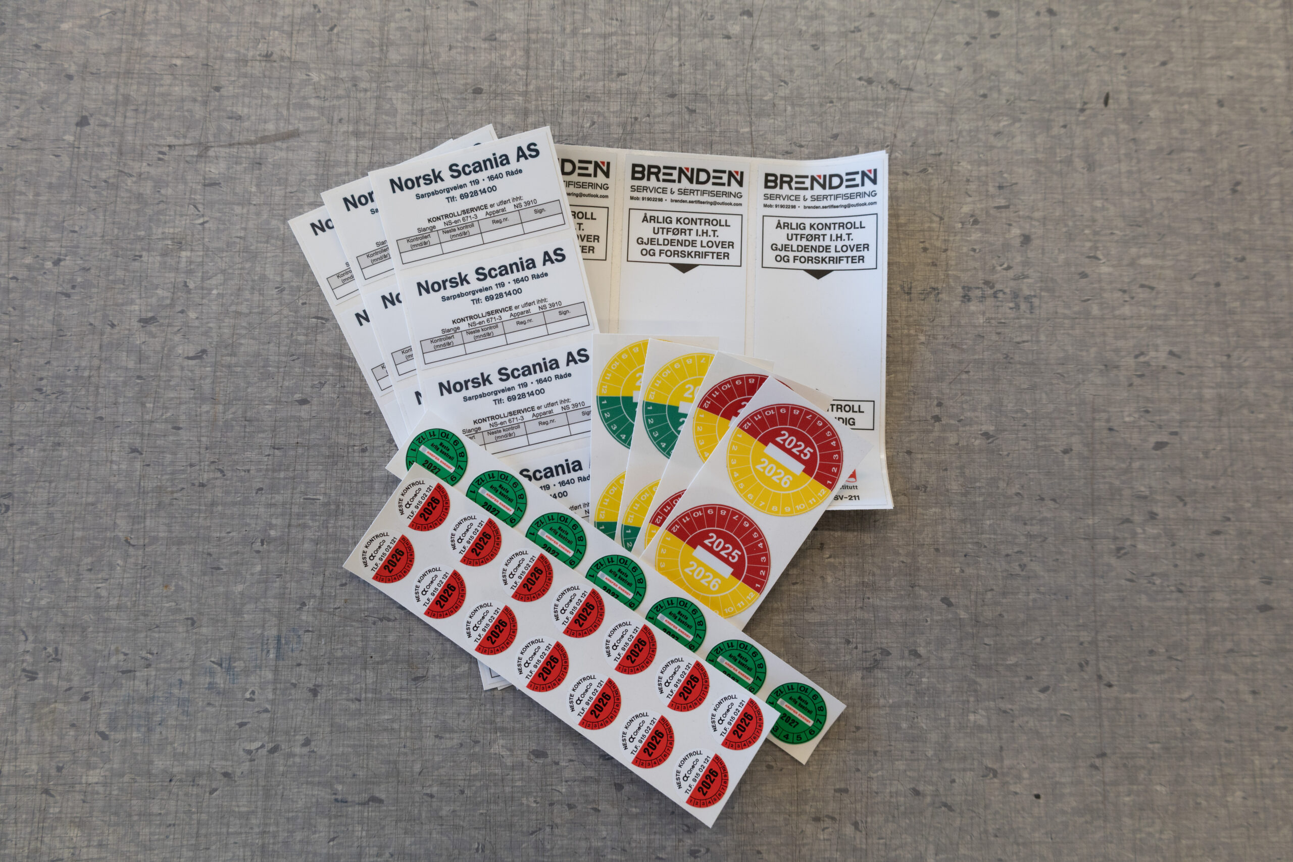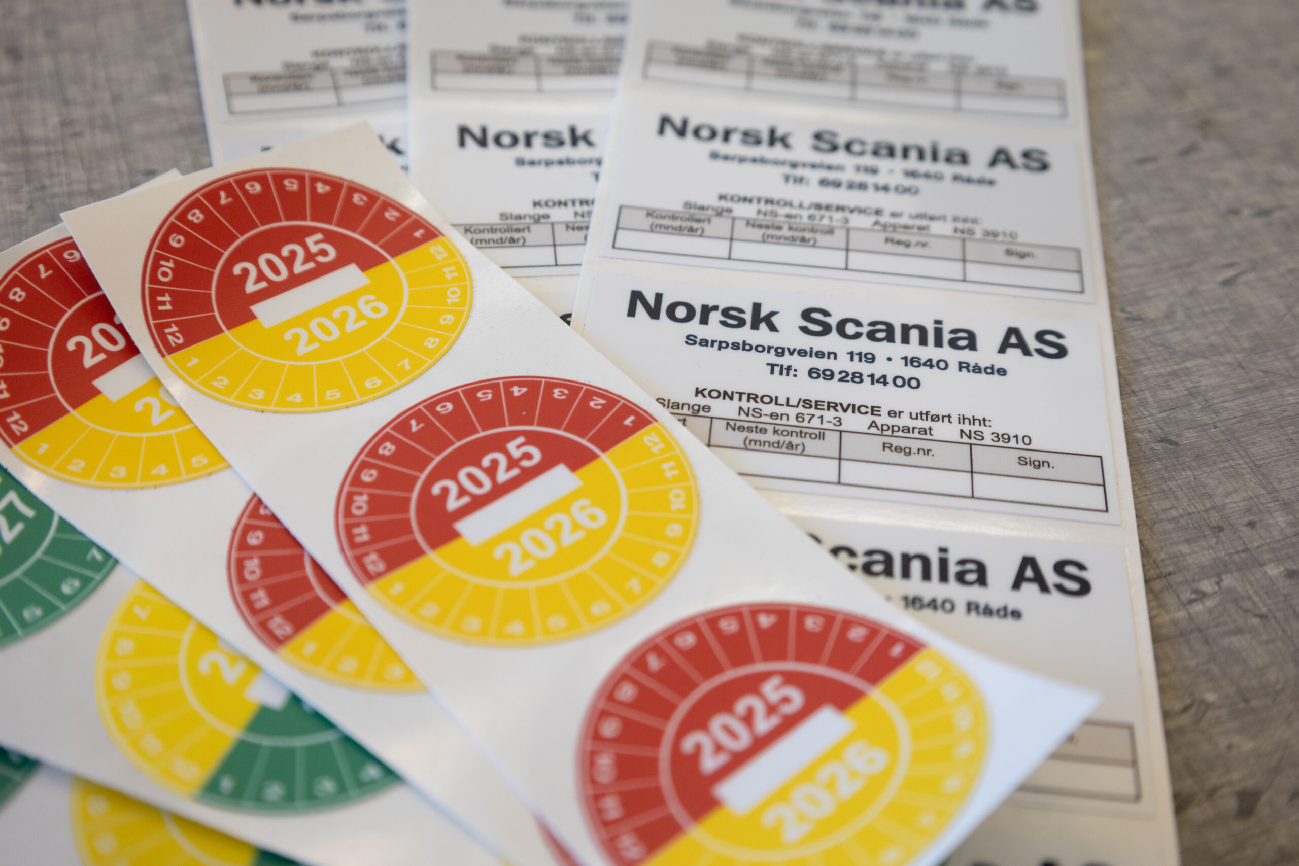 Oblatet viser at kontrollen er utført, og viser datoen for neste års kontroll. Kontrollmerket tilfredsstiller kravene til dokumentasjon av sertifisert kontroll beskrevet i forskrift 555 «Bruk av arbeidsutstyr».